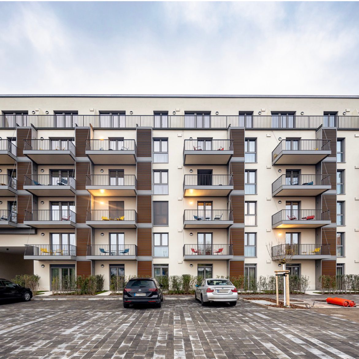 Die fertiggestellte Wohnimmobilie umfasst einen modernen Neubau im KfW-40-Plus-Standard mit 88 Wohneinheiten, 119 Abstellboxen im Keller sowie 7 ebenerdigen Pkw-Stellplätzen. Die Vermietung ist bereits angelaufen: 61 der 88 Apartments sind aktuell vergeben, was einer Vermietungsquote von rund 69 % bezogen auf die Einheiten entspricht. Die Immobilie soll noch im laufenden Jahr nahezu vollständig vermietet sein (ohne Tiefgaragenstellplätze). Die prognostizierte Jahresnettokaltmiete liegt bei ca. 1.024.918 €.